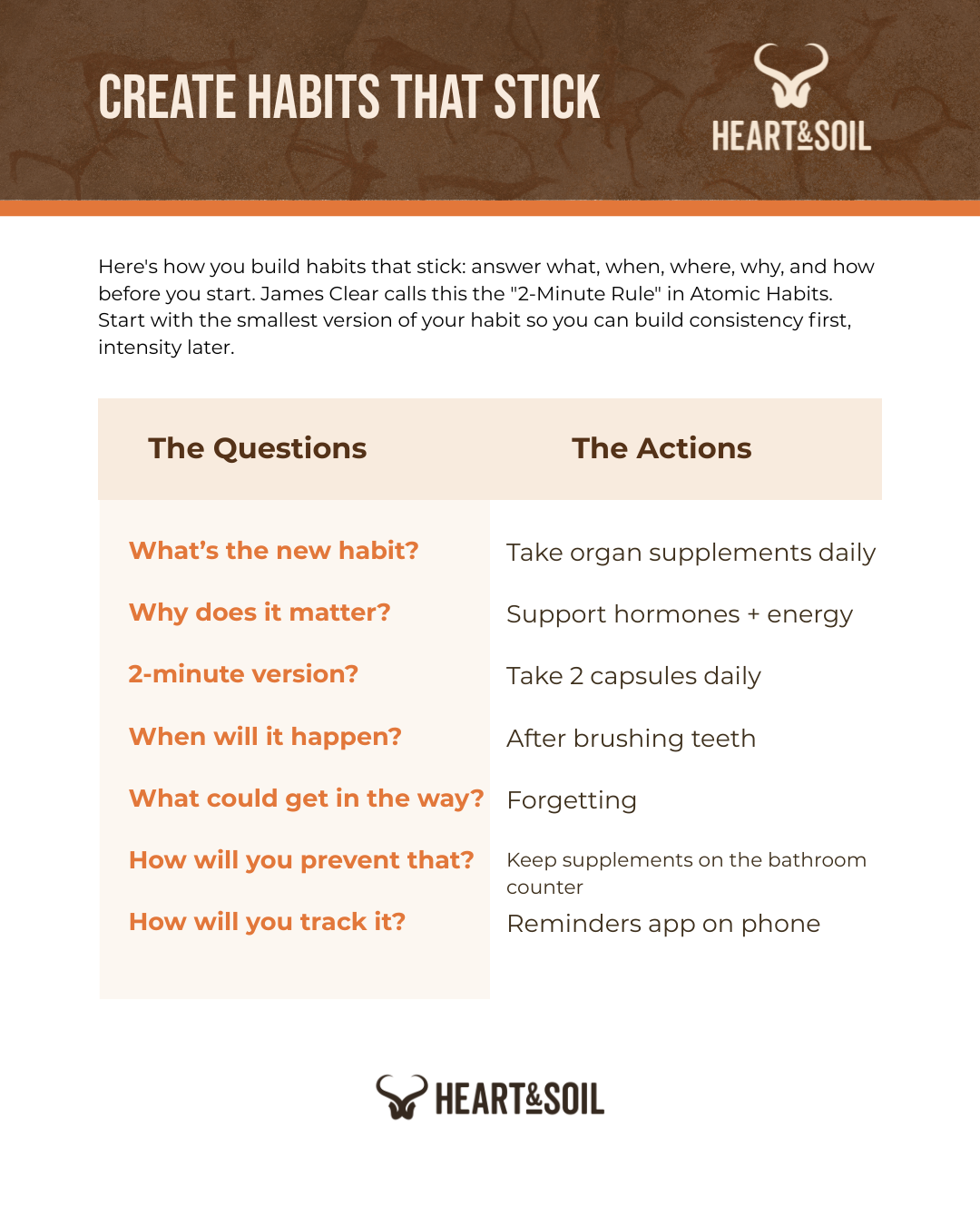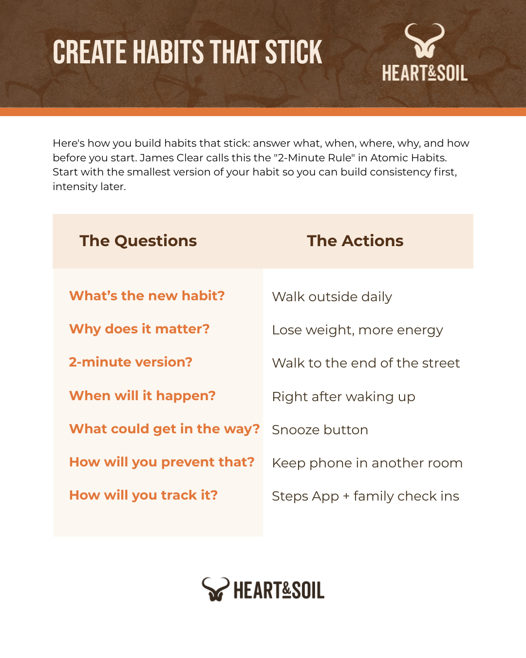 Here’s how you build habits that stick: answer what, when, where, why, and how before you start. James Clear calls this the “2-Minute Rule” in